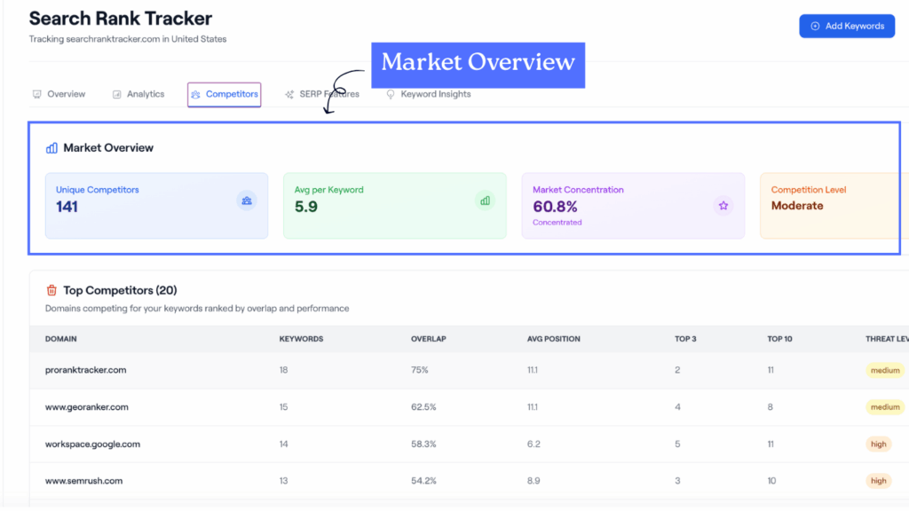At the very top of the Competitors dashboard, you’ll see a quick Market Overview.