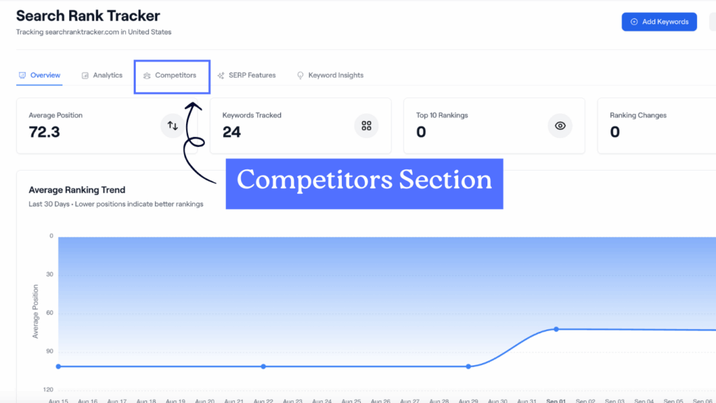 With our Search Rank Tracker’s Competitors feature, you can get a clear view of what your competitors are doing, particularly with the same keywords you target.